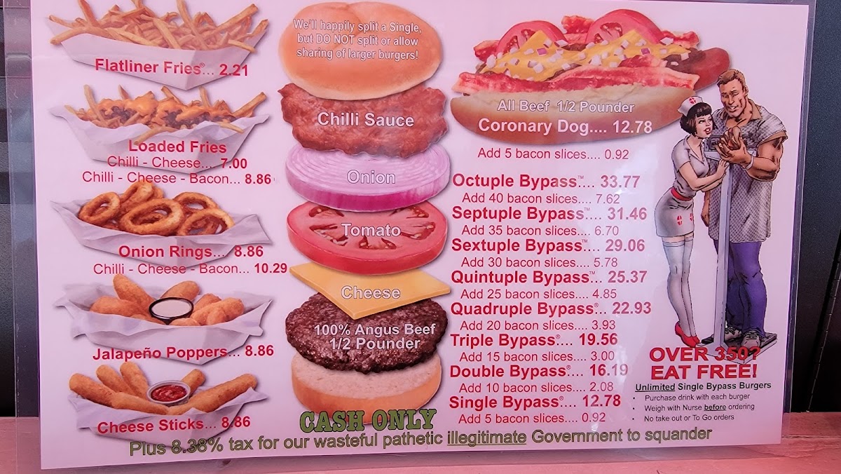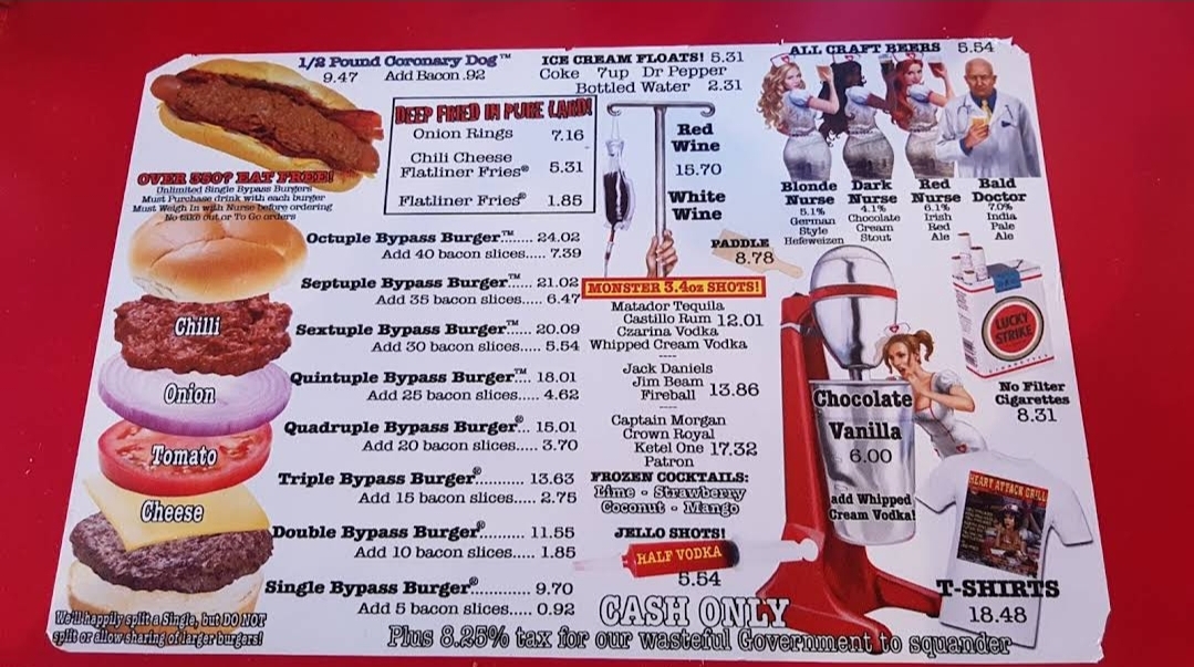 Welcome to the Heart Attack Grill, a thrilling establishment located at 450 Fremont St, Las Vegas, NV, where indulgence meets entertainment in a medical-themed setting. This unique hamburger restaurant is renowned not just for its massive portions but also for its quirky, tongue-in-cheek approach to dining. A visit here is not just a meal; it's an experience that tugs at your sense of adventure while offering a hearty nod to the outrageousness of American fast food culture.