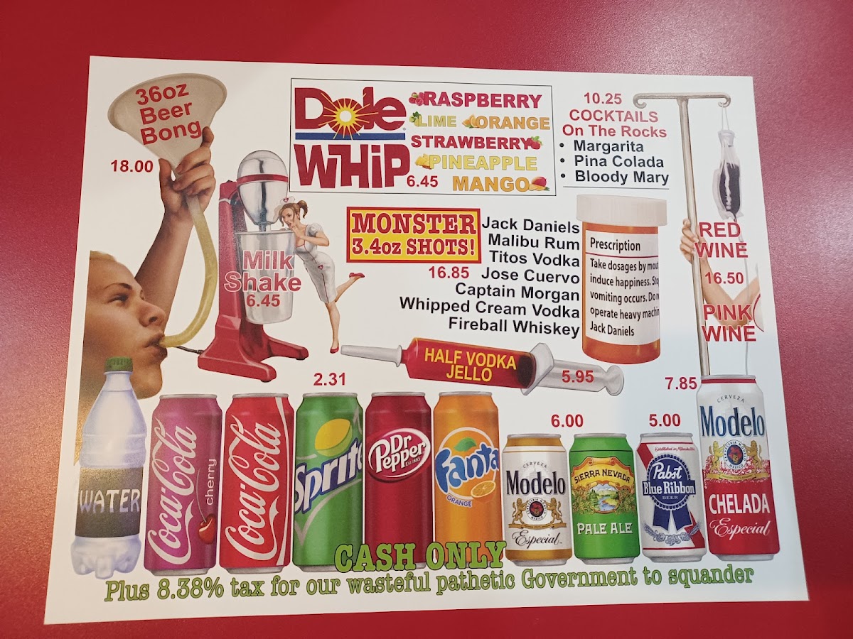 As you dig into your meal, expect a rich array of side options, from crispy fries to savory onion rings, both of which come highly recommended by visitors. For those with a sweet tooth, the shakes served in gargantuan portions won’t disappoint, providing a dessert experience that’s almost meal-worthy itself. The unexpected twists in food presentation—served in pill bottles and huge syringes—only add to the playful ambience, as noted by enthusiastic diners like Edward who appreciated the whimsical flair.